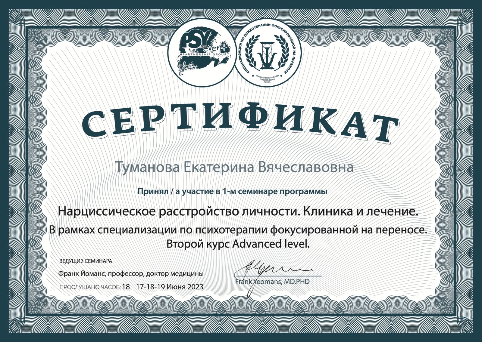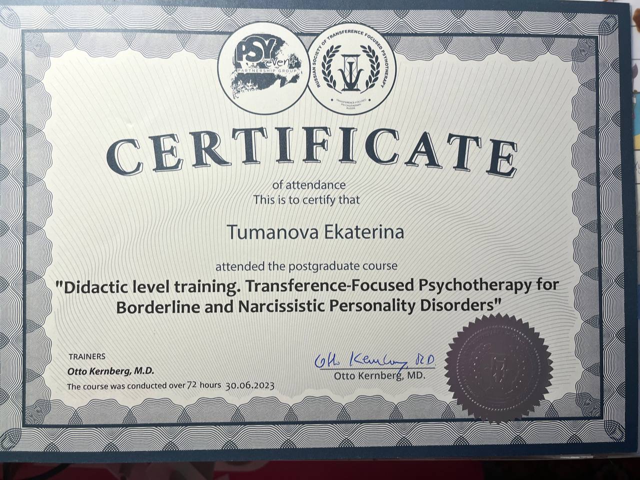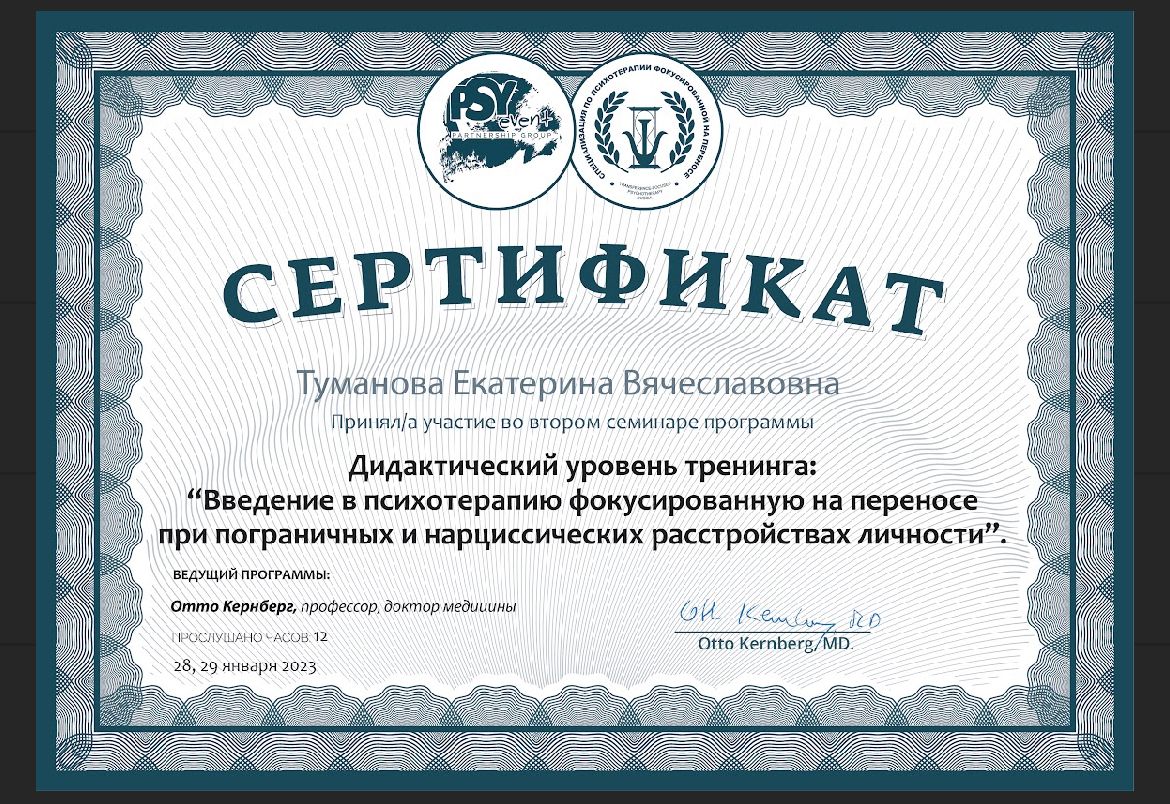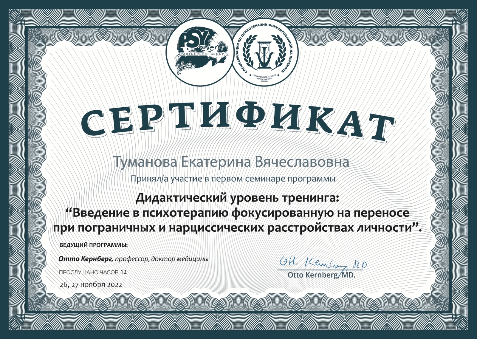 Прохожу обучение работе с пограничными и нарциссическими расстройствами личности под руководством Отто Кернберга.